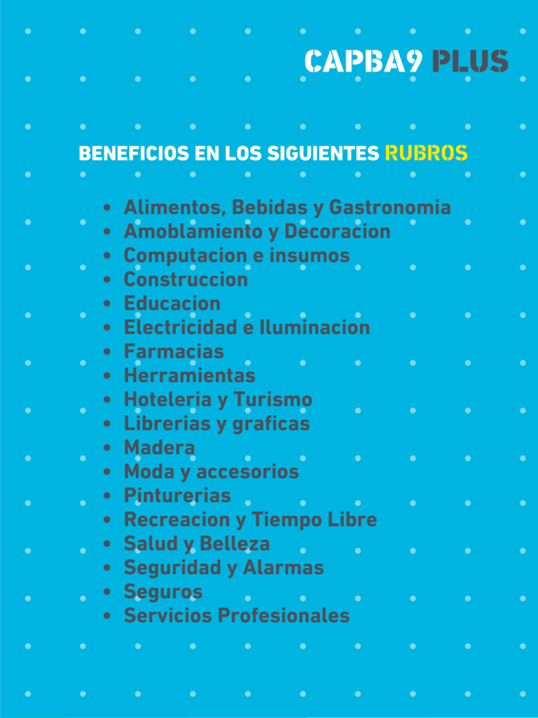 Capba_9 plus es un a aplicación que cuenta en principio con más de 100 empresas e instituciones que ofrecen productos o servicios con importantes descuentos exclusivos para la matricula del Capba Distrito 9.