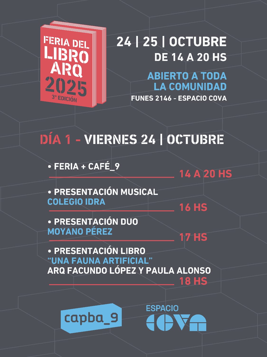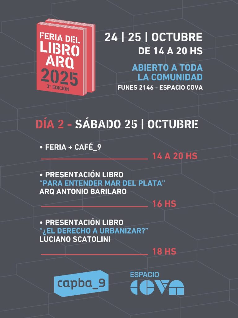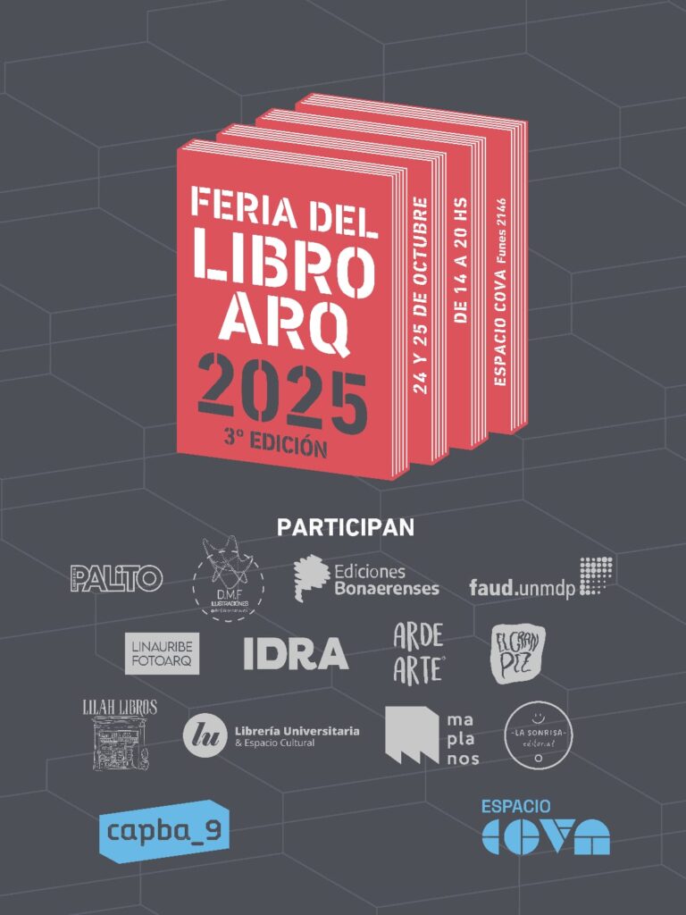 Llega la 3ra. Feria del libro ARQ, organizada por el Colegio de Arquitectos de la Provincia de Buenos Aires – Capba 9 , los días 24 y 25 de octubre de 2025, de 14 a 20 hs en el @espacio.cova (Funes 2146).