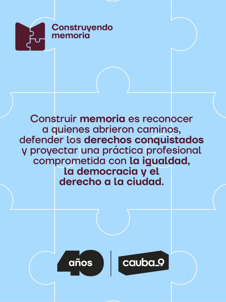 Construir memoria es reconocer a quienes abrieron caminos, sostener los derechos conquistados y proyectar una práctica profesional comprometida con la igualdad, la democracia y el derecho a la ciudad.