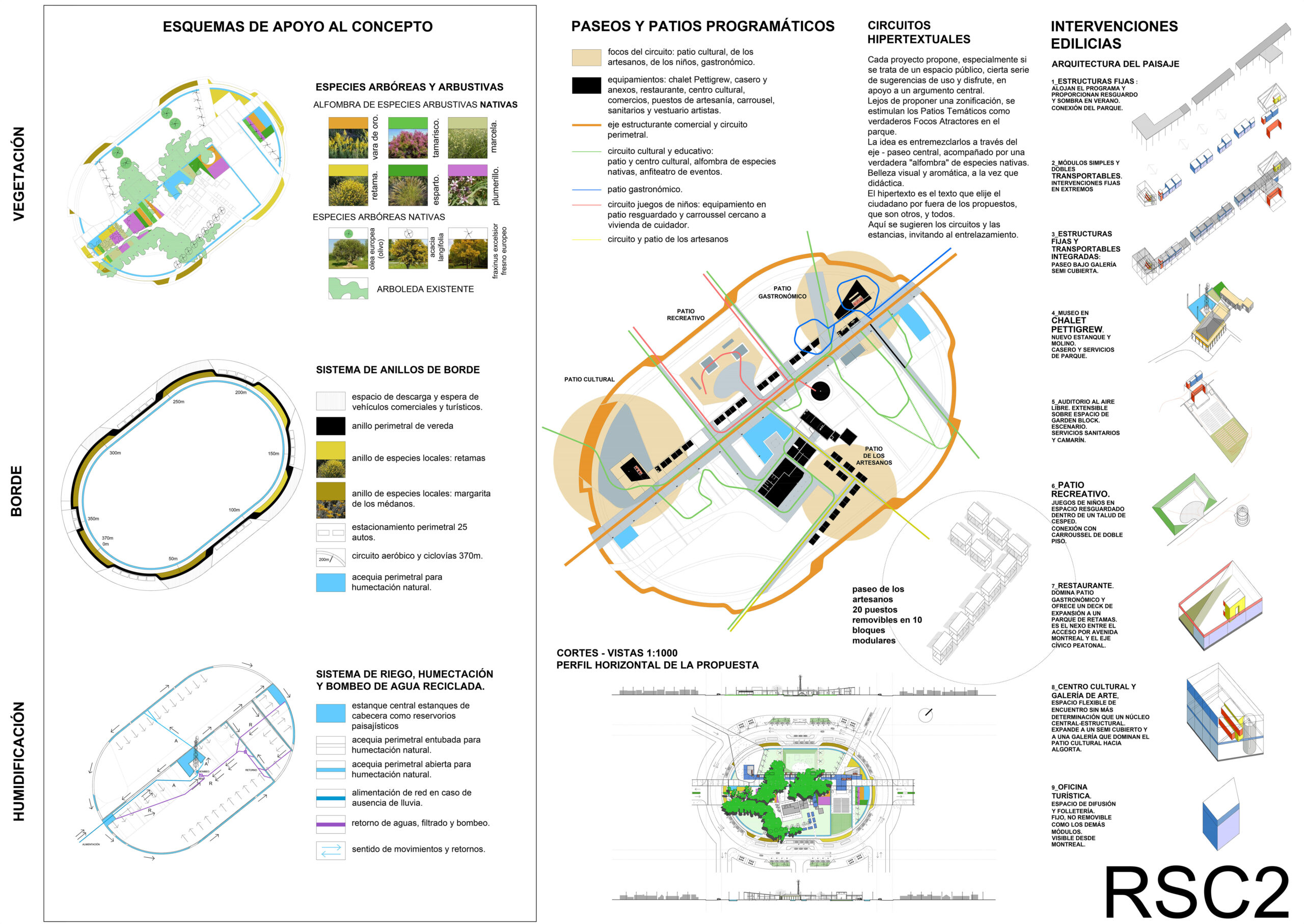 El trabajo que obtuvo el Primer Premio, es el identificado con el Nº de Carpeta 005, cuya autoría corresponde al Arq. Raul Walter Arteca de la ciudad de La Plata. Sus colaboradores fueron el Ing. Forestal Estudio Tonello-Pintus (Forestación) y el Sr. Felipe Moscoloni (Renders).