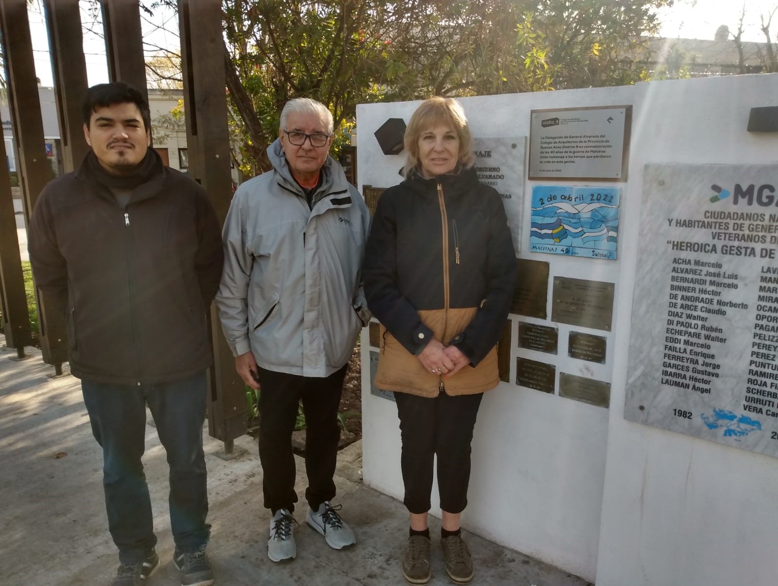 La Delegación de Gral. Alvarado representada por su delegado el arq. Agustín Maceio y la subdelegada arq. Bibiana Picciani colocaron una placa en el paseo de Los Heroes de Malvinas.